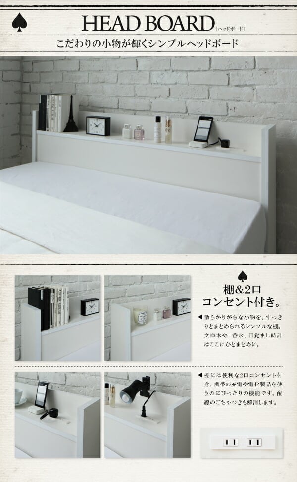 棚・コンセント付き収納すのこベッド ベッドフレームのみ ダブル