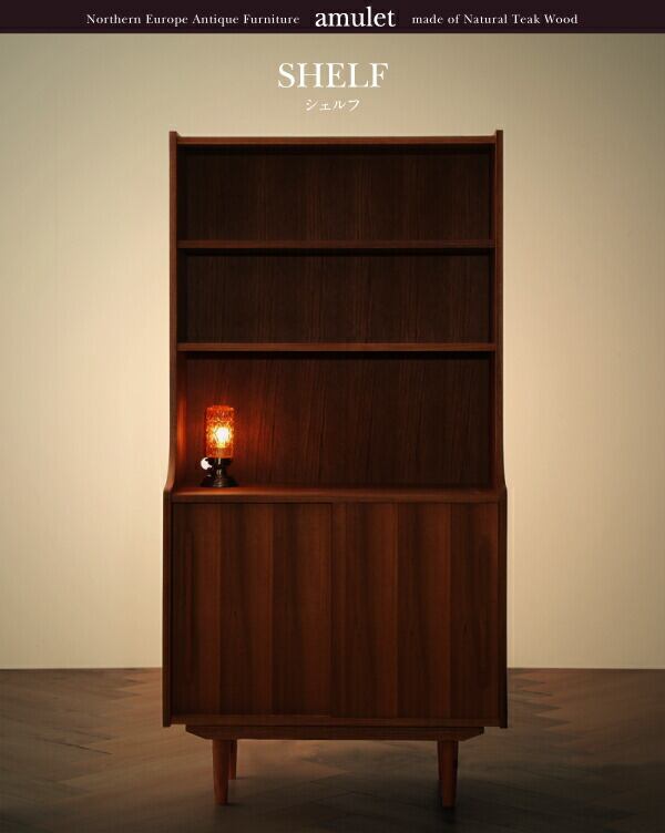 天然木チーク材北欧アンティーク風リビング収納シリーズ シェルフ