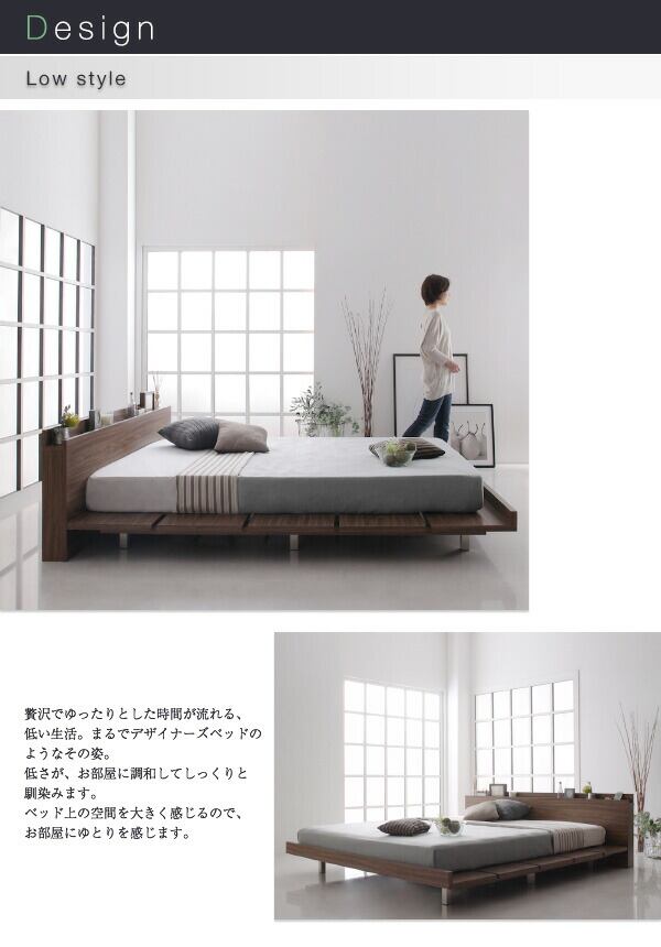 モダンデザインローベッド 国産カバーポケットコイルマットレス付き ナローステージ ダブル フレーム幅160