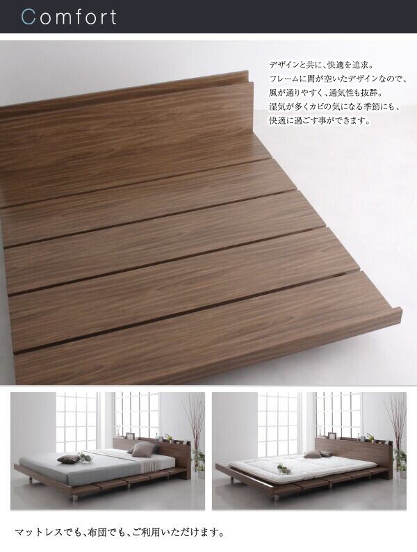 モダンデザインローベッド マルチラススーパースプリングマットレス付き ナローステージ ダブル フレーム幅160