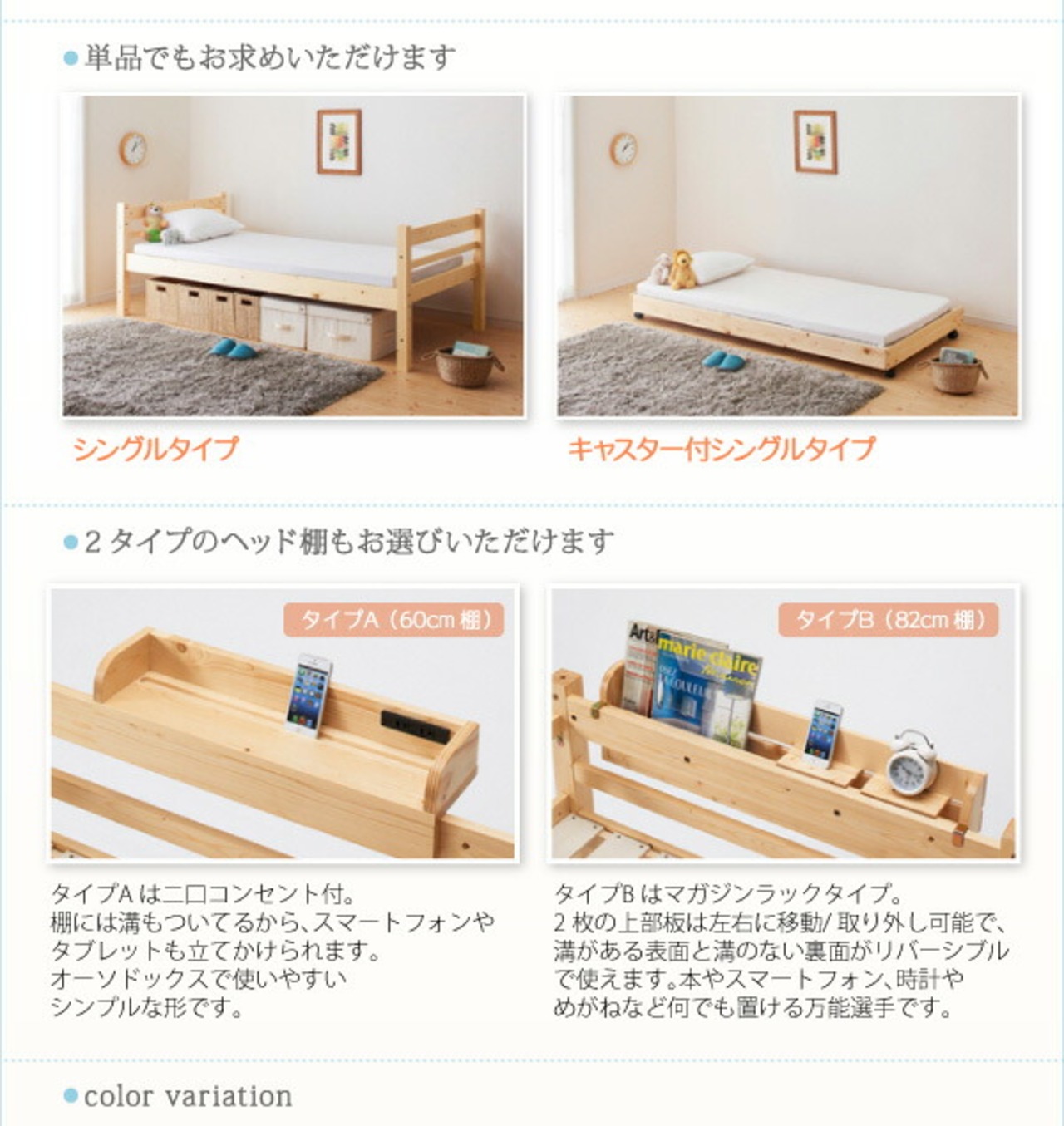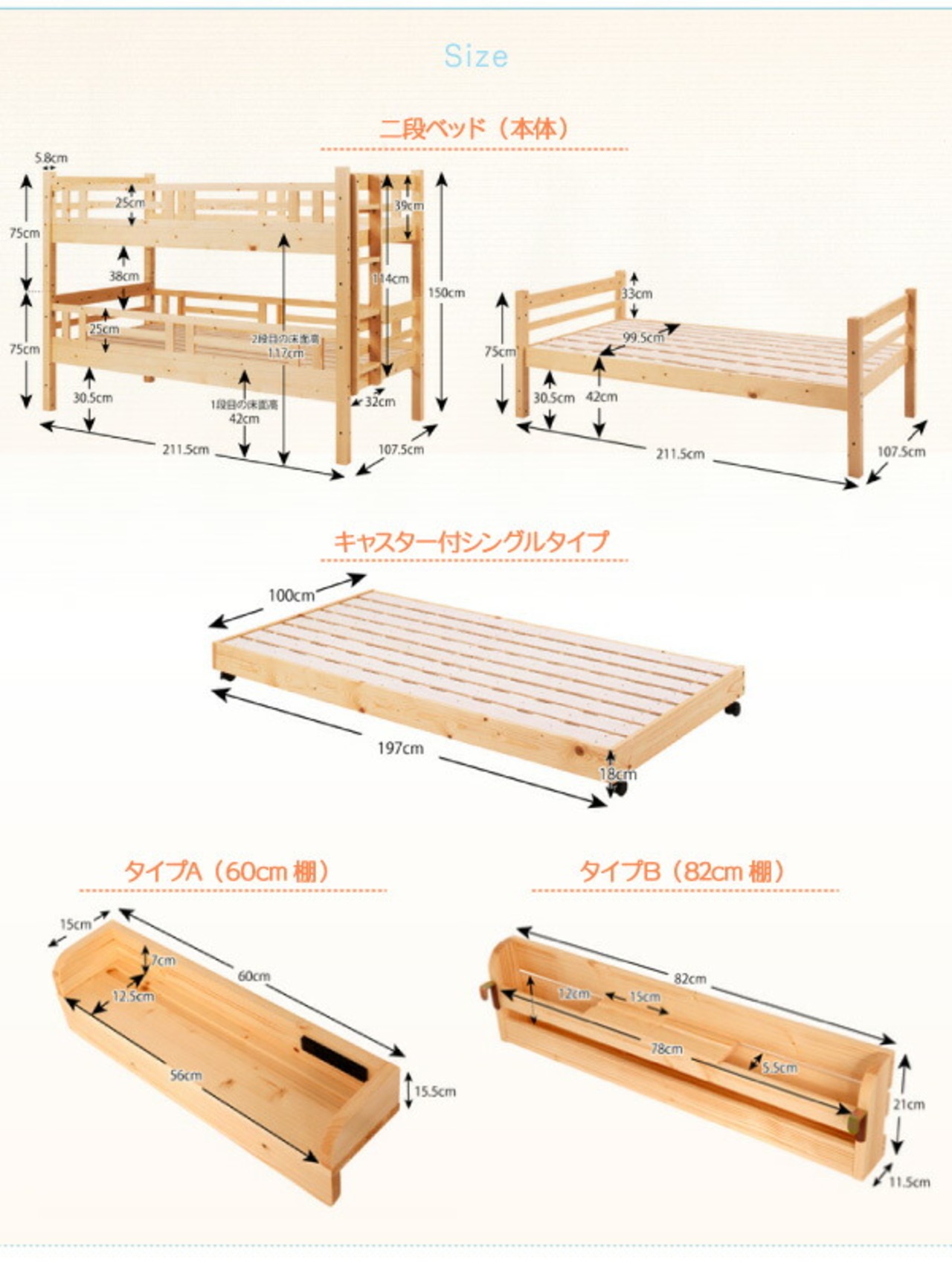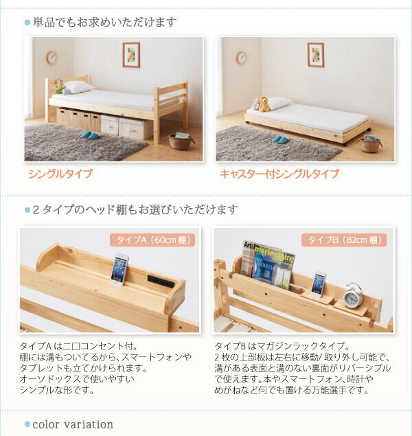 タイプが選べる頑丈ロータイプ収納式3段ベッド 専用別売品 60cm棚