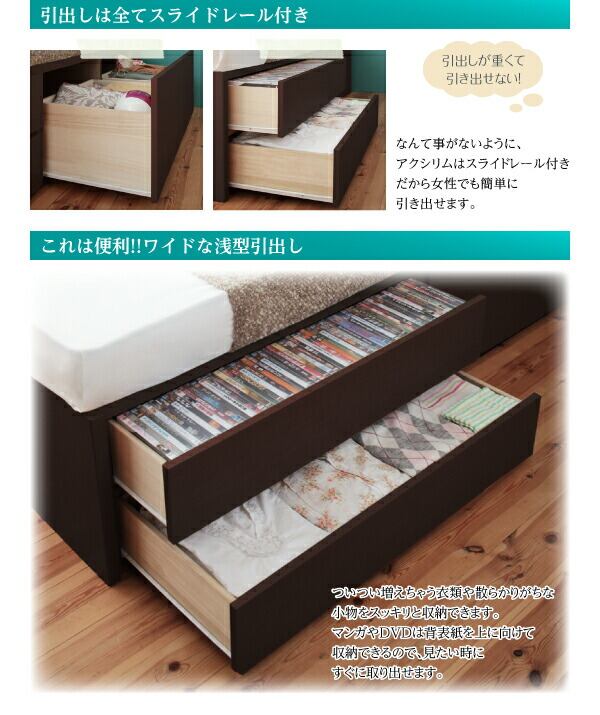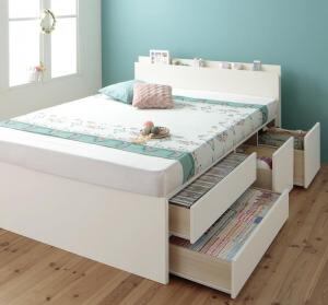 お客様組立 日本製_棚・コンセント付き_大容量チェストベッド 薄型プレミアムポケットコイルマットレス付き セミシングル