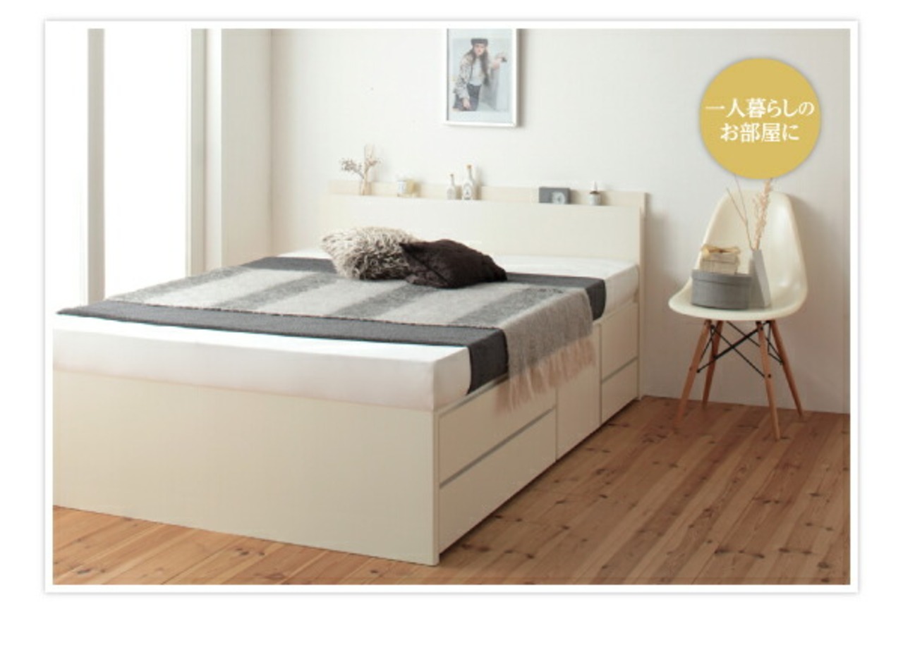 お客様組立 日本製_棚・コンセント付き_大容量チェストベッド ベッドフレームのみ シングル