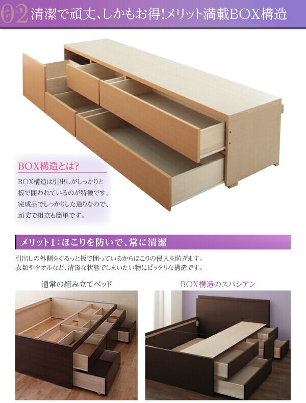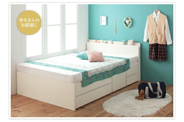 お客様組立 日本製_棚・コンセント付き_大容量チェストベッド ベッドフレームのみ セミダブル