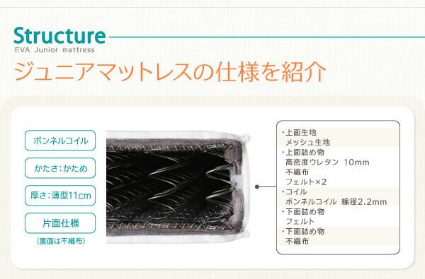 子どもの睡眠環境を考えた 安眠マットレス 薄型・軽量・高通気 ジュニア ボンネルコイル セミシングル ショート丈