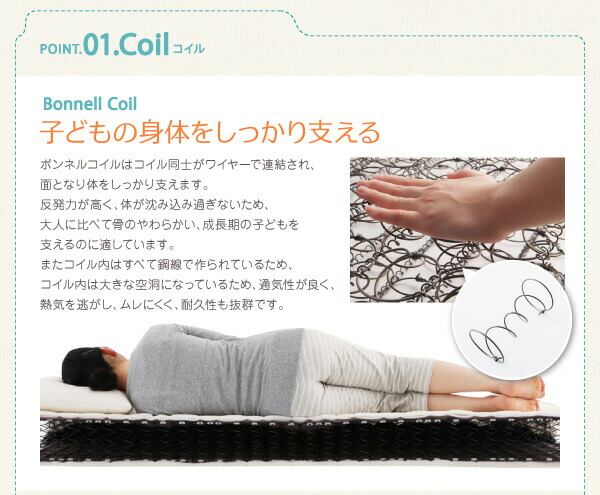 子どもの睡眠環境を考えた 安眠マットレス 薄型・軽量・高通気 ジュニア ボンネルコイル シングル ショート丈