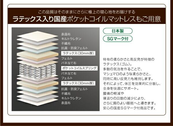 天然ラテックス入り国産ポケットコイルマットレス付き シングル
