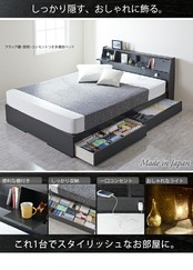 フラップ棚・照明・コンセントつき多機能ベッド ポケットコイルマットレス付き シングル