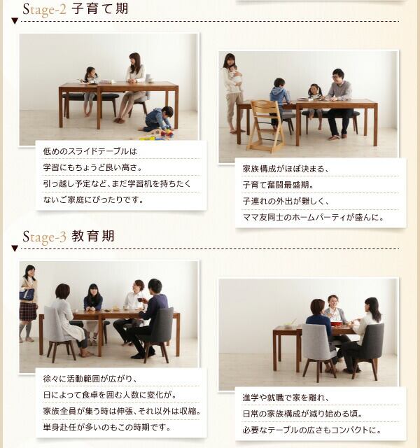 ダイニング5点セット(テーブル+チェア4脚) 幅135-235