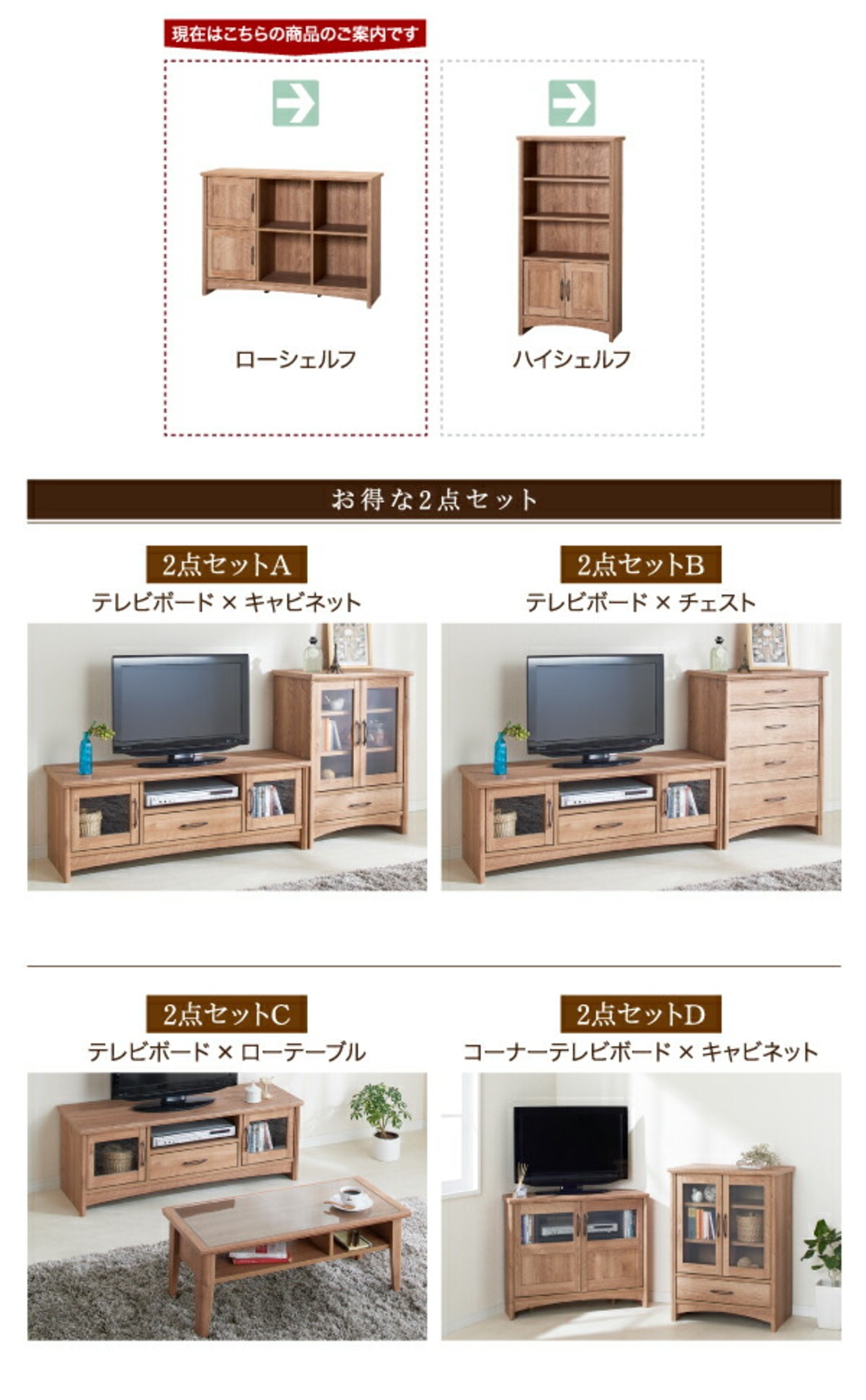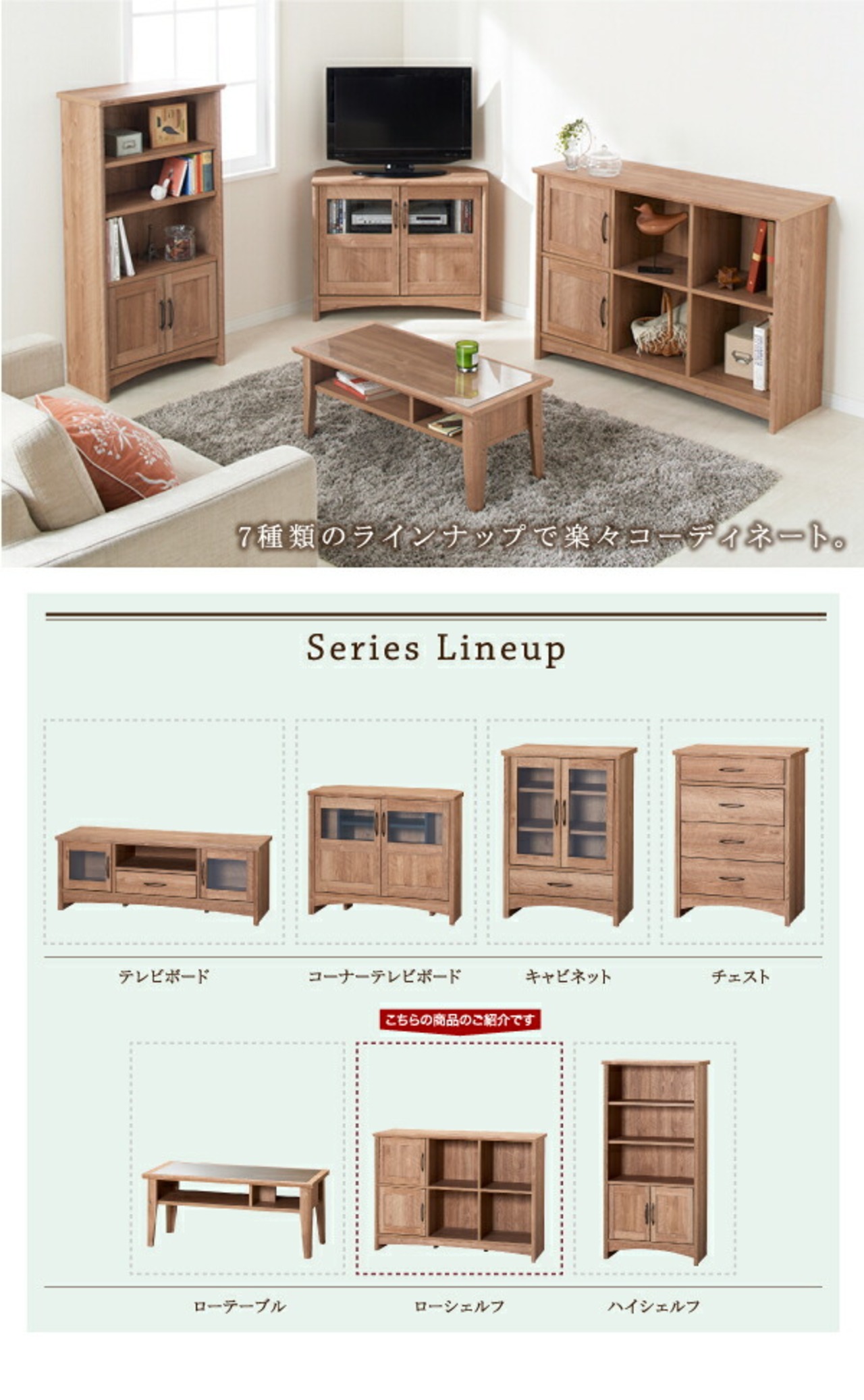 オーク調リビング収納シリーズ シェルフ ローシェルフ