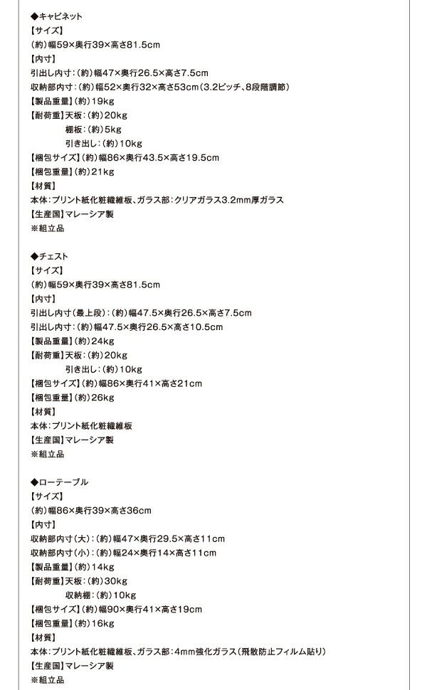●ベッド、リビングダイニング、収納家具については【完成品】【組立設置付き】と記載が無い場合はお客様にて組立が必要になります。