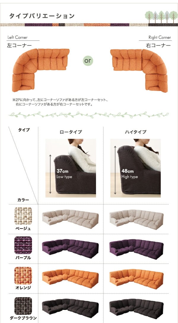 フロアコーナーソファ ハイタイプ 右コーナータイプ 1P+2P+コーナー