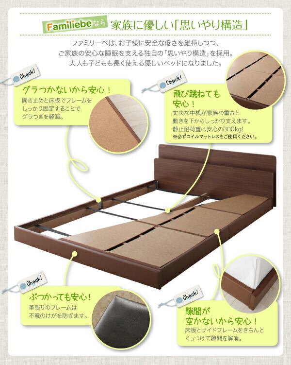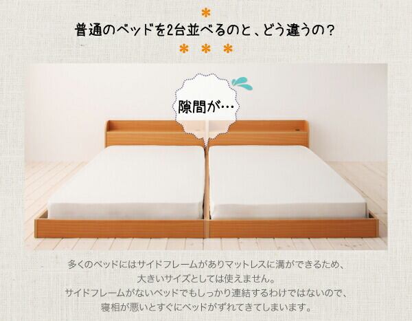 親子で寝られる棚・コンセント付き安全連結ベッド ポケットコイルマットレス付き ワイドK260(SD+D)