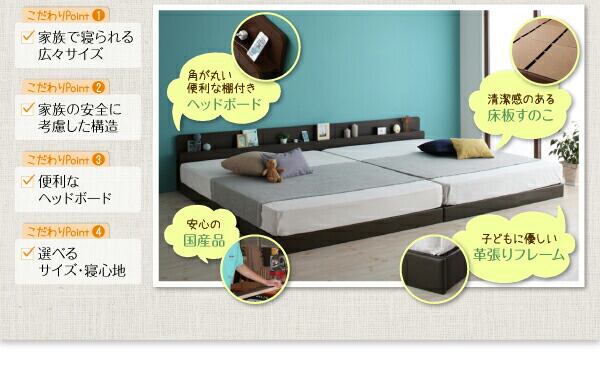 親子で寝られる棚・コンセント付き安全連結ベッド 国産ポケットコイルマットレス付き ワイドK260(SD+D)
