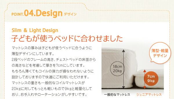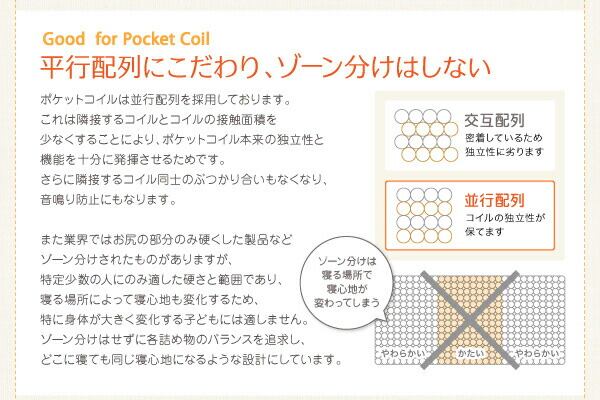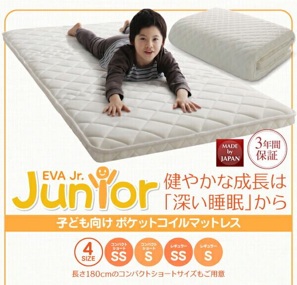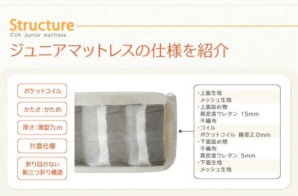 子どもの睡眠環境を考えた 安眠マットレス 薄型・軽量・高通気 ジュニア ポケットコイル シングル ショート丈