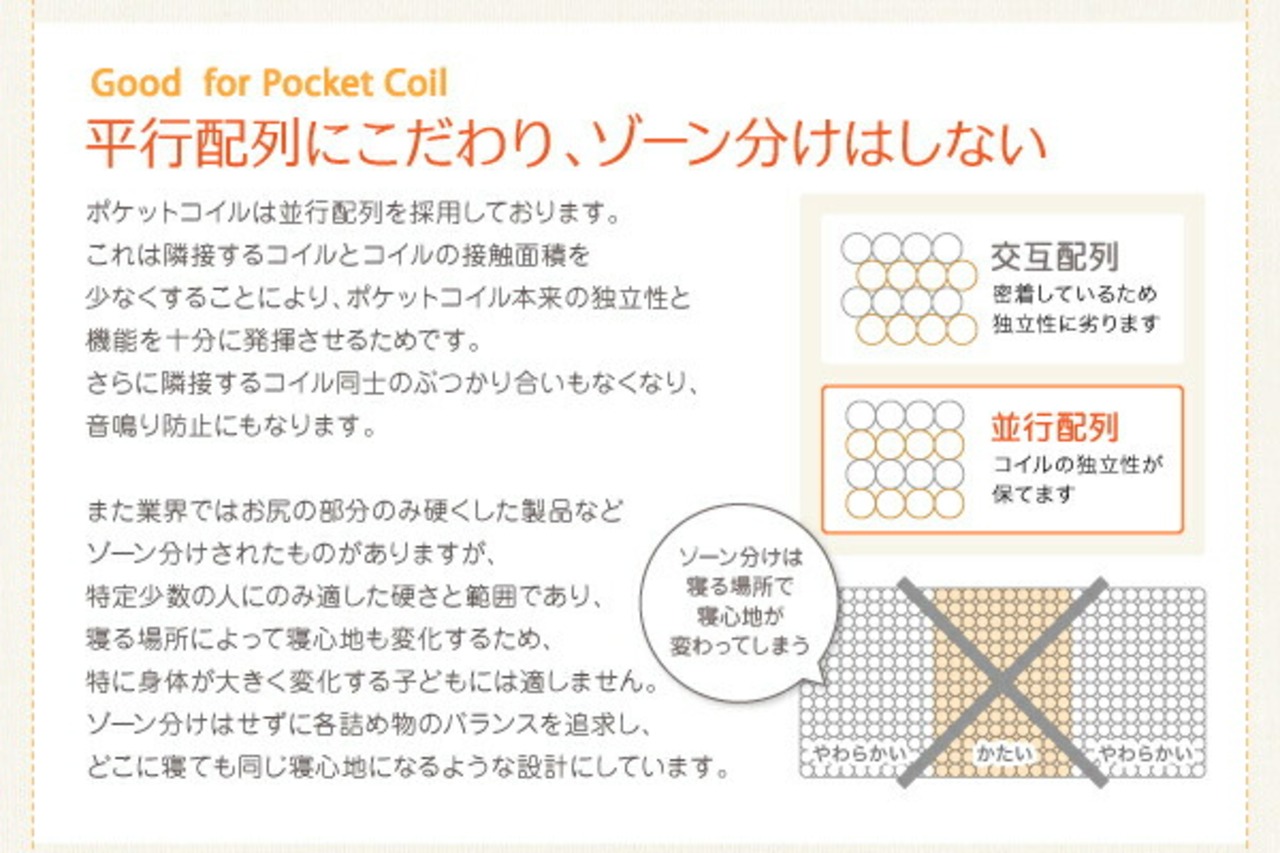 子どもの睡眠環境を考えた 安眠マットレス 薄型・軽量・高通気 ジュニア ポケットコイル セミシングル レギュラー丈