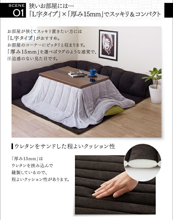 こたつに合わせるフロアコーナーソファ コの字 マット部分サイズ 190×190cm 厚さ40mm
