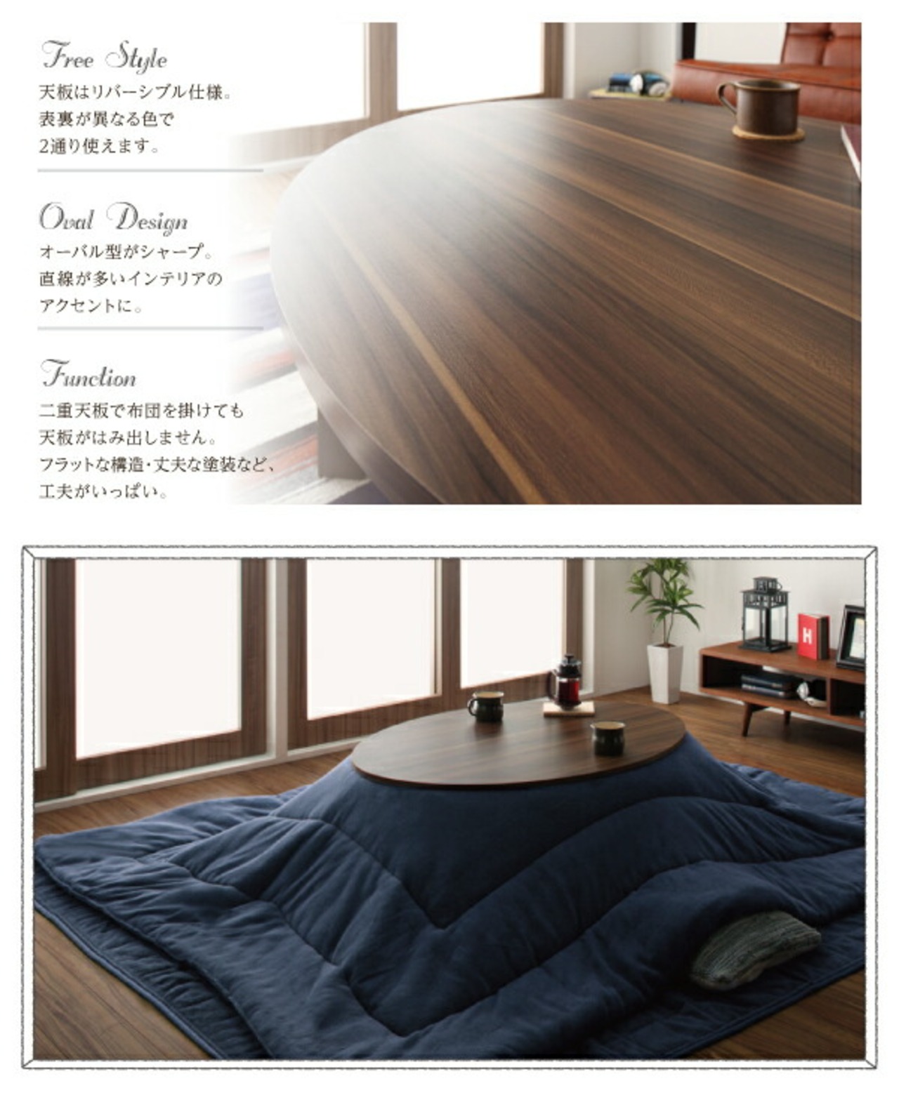 オーバル&ラウンドデザイン天板リバーシブルこたつテーブル 円形(直径80cm)