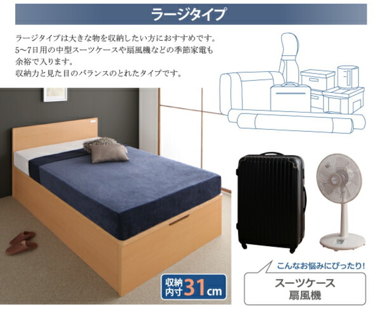 お客様組立 フラットヘッドコンセント付跳ね上げ収納ベッド ベッドフレームのみ シングル 深さレギュラー