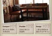 アメリカンヴィンテージ リビングダイニングセット 5点セット(テーブル+ソファ1脚+アームソファ1脚+チェア1脚+ベンチ1脚) 右アーム W120