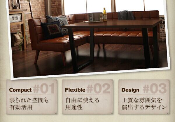 アメリカンヴィンテージ リビングダイニングセット 3点セット(テーブル+ソファ1脚+アームソファ1脚) 左アーム W150