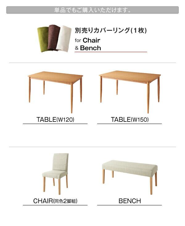 おうちの洗濯機でラクラク洗える! カバーリングダイニング 5点セット(テーブル+チェア4脚) W150