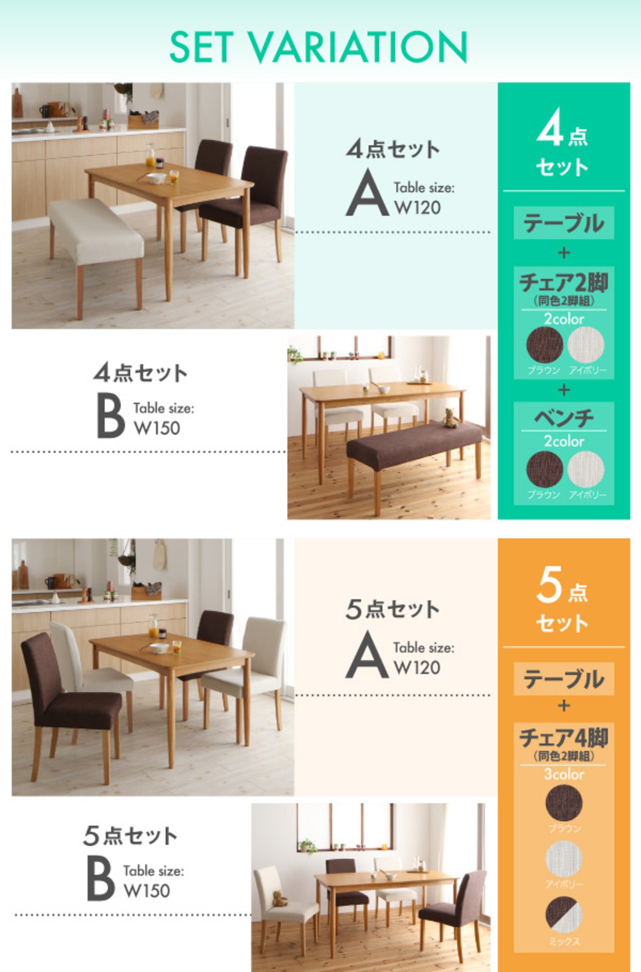 ダイニングテーブル単品 W150