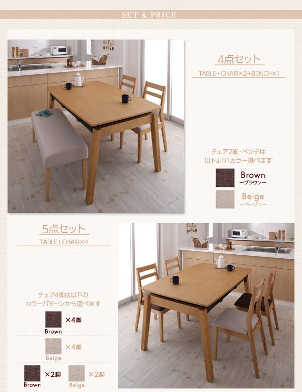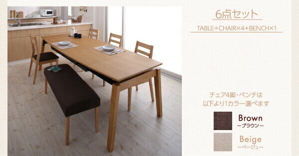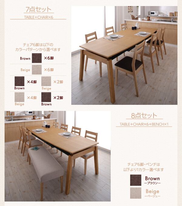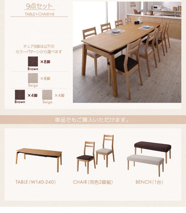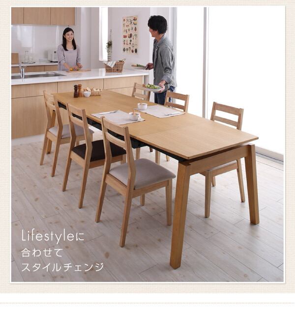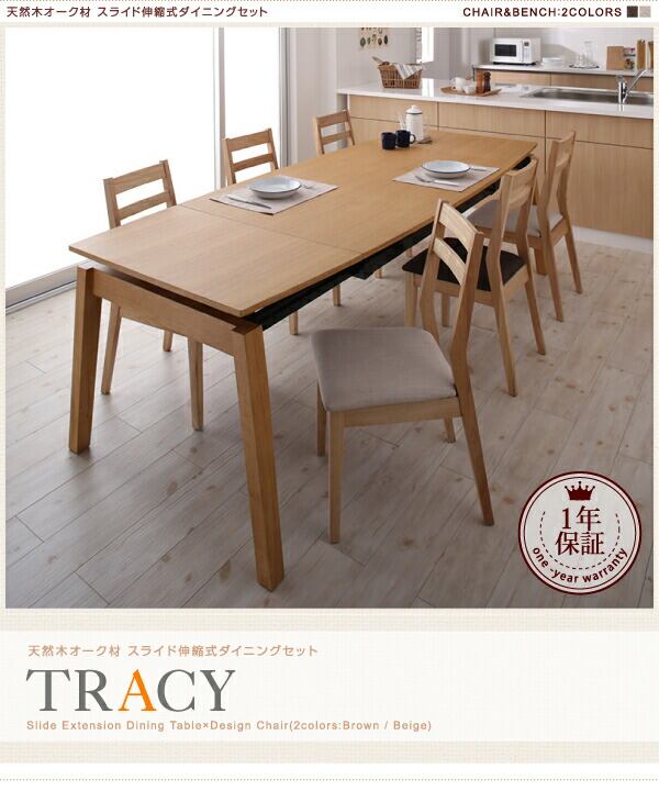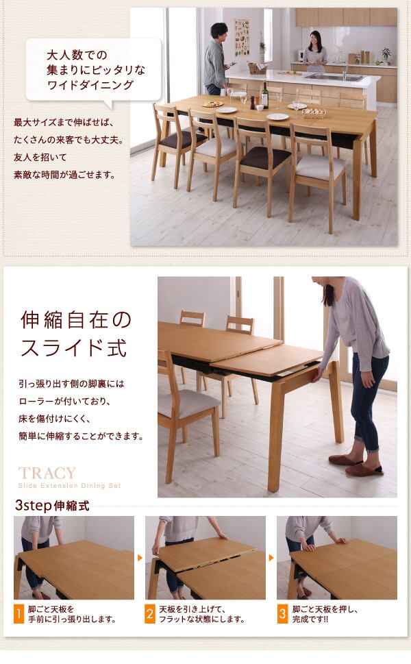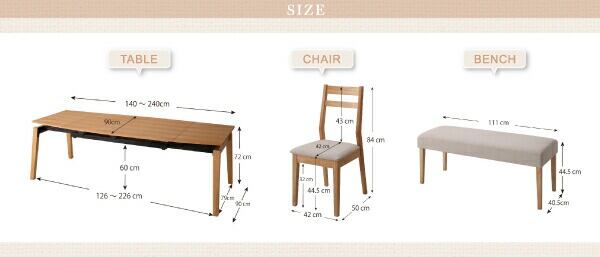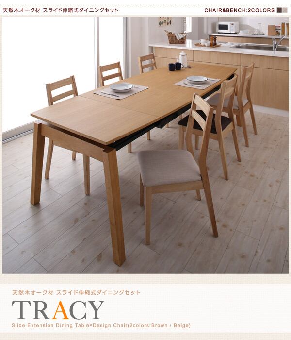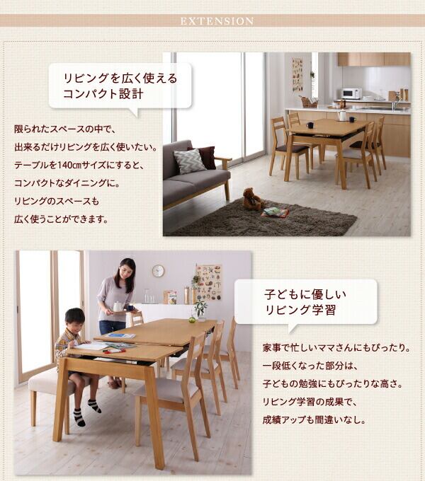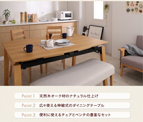 天然木オーク材 スライド伸縮式ダイニングセット ダイニングテーブル W140-240