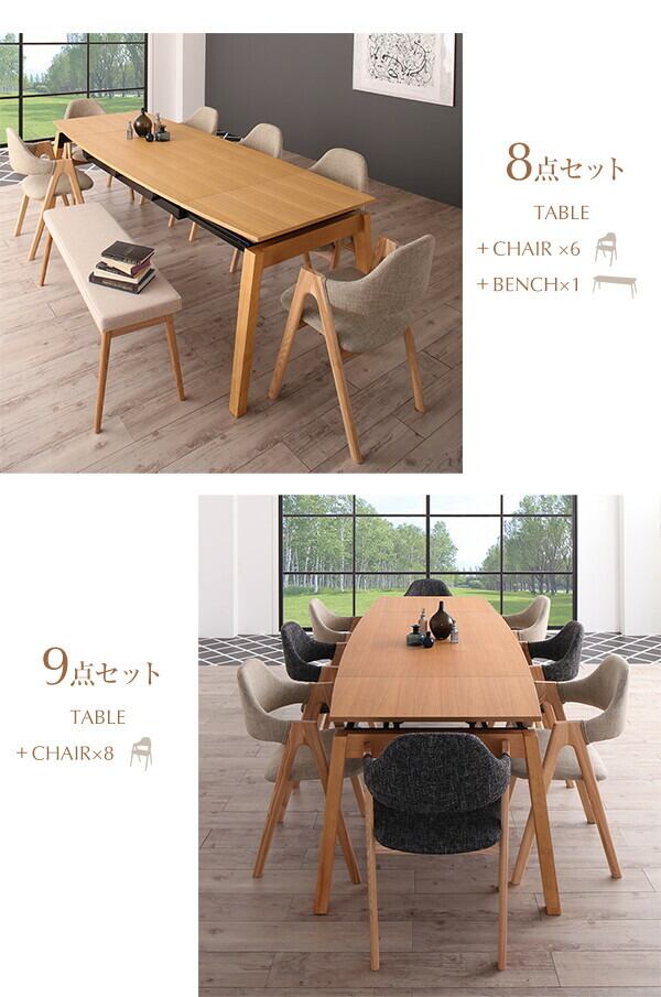 天然木オーク材 スライド伸縮式ダイニングセット ダイニングテーブル W140-240