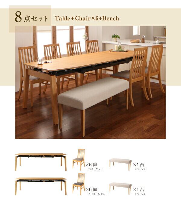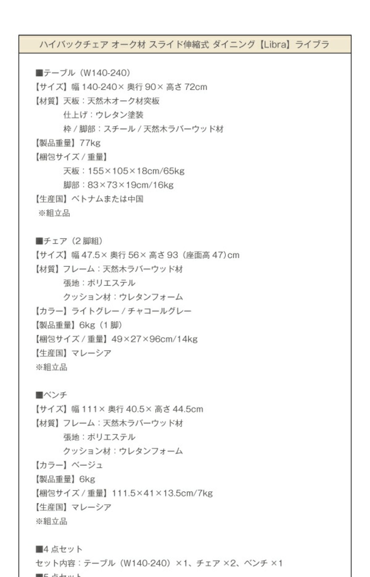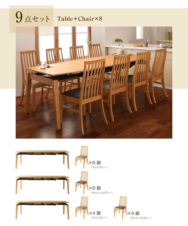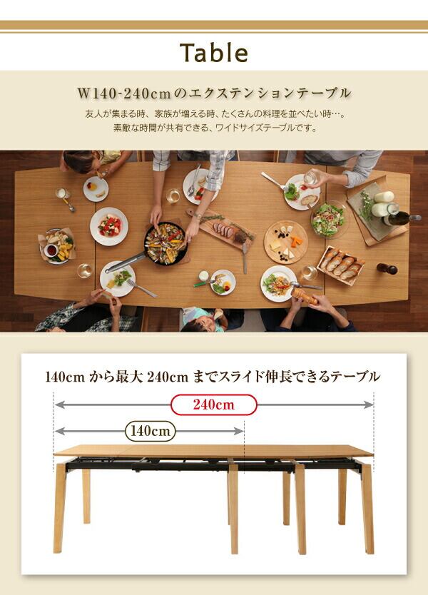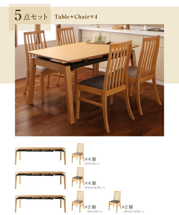 ダイニング5点セット(テーブル+チェア4脚) W140-240