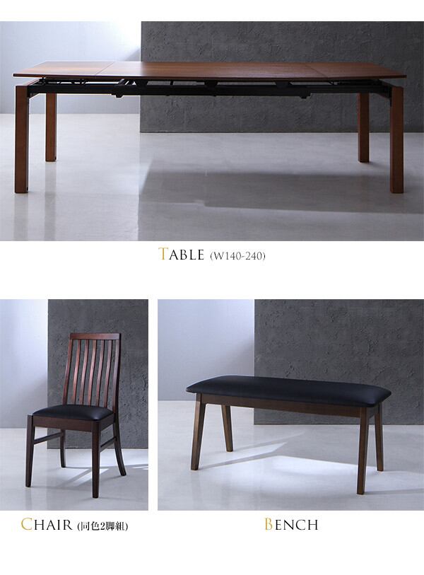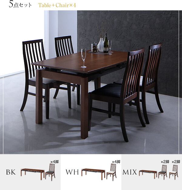 ダイニング7点セット(テーブル+チェア6脚) W140-240