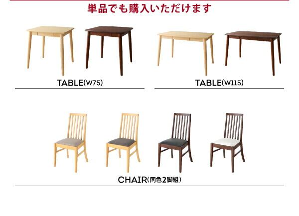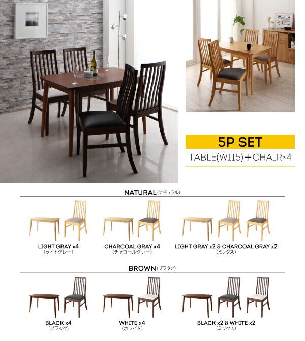 ダイニング5点セット(テーブル+チェア4脚) ナチュラル W115