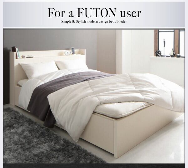 お客様組立 国産 棚・コンセント付き収納ベッド スタンダードポケットルコイルマットレス付き 床板仕様 セミダブル