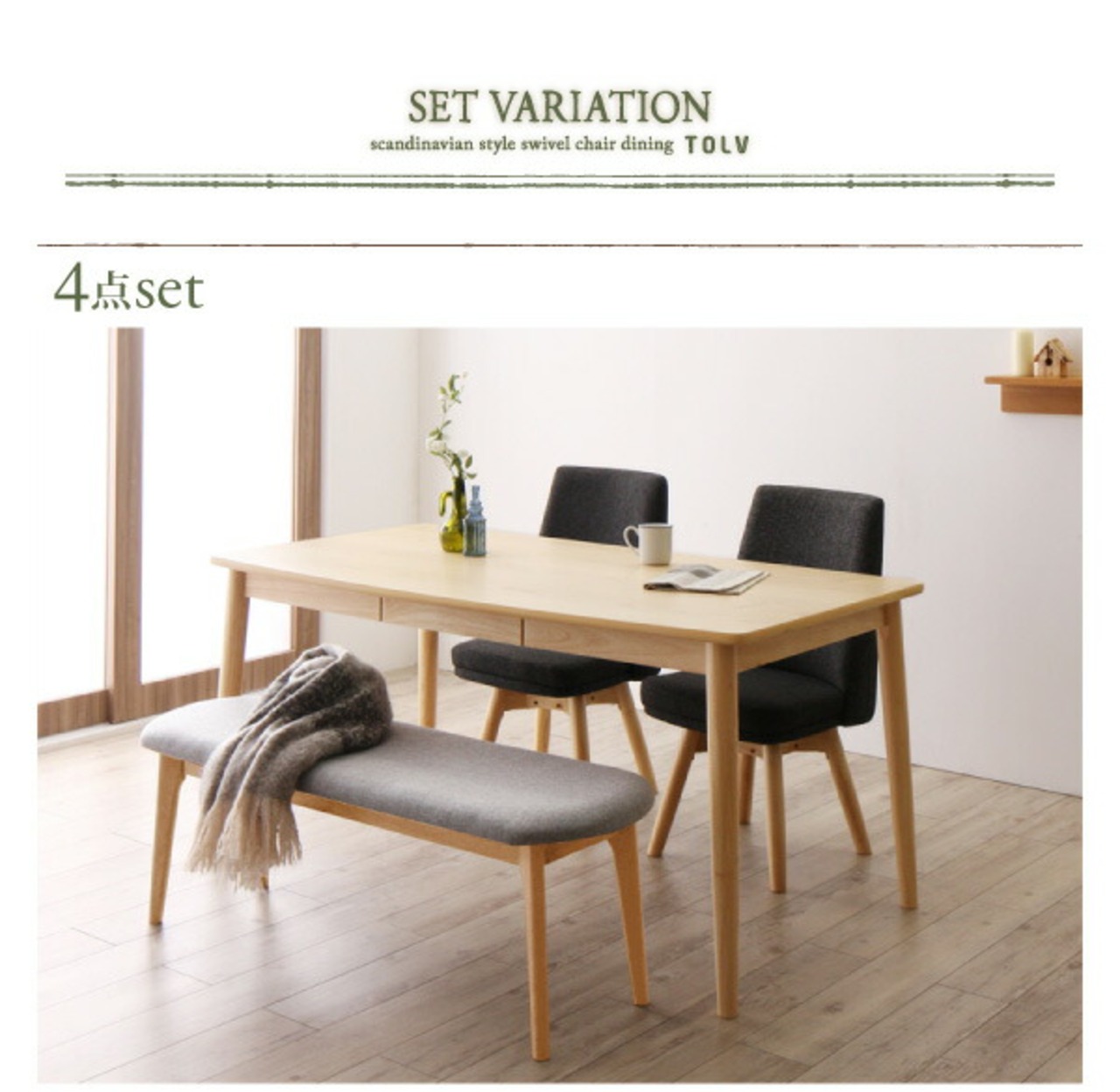 北欧スタイル 回転チェア ダイニング ダイニングチェア 2脚組 ブラウン