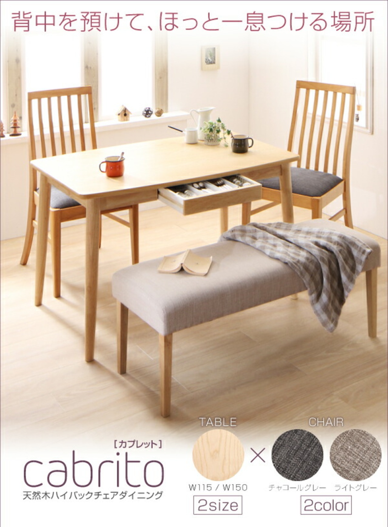 天然木 ハイバックチェア ダイニング 5点セット(テーブル+チェア4脚) W115