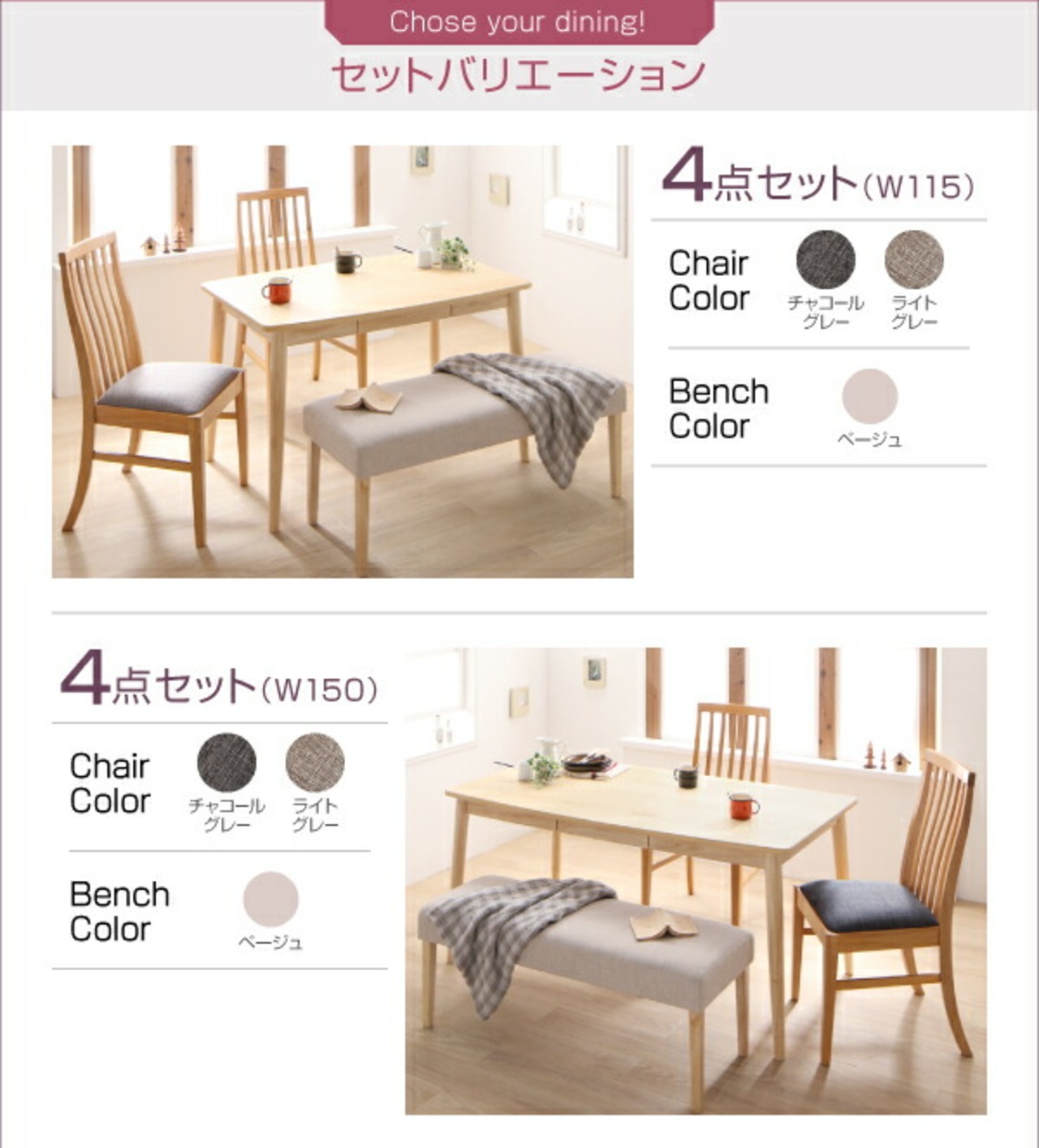 ダイニング5点セット(テーブル+チェア4脚) W115