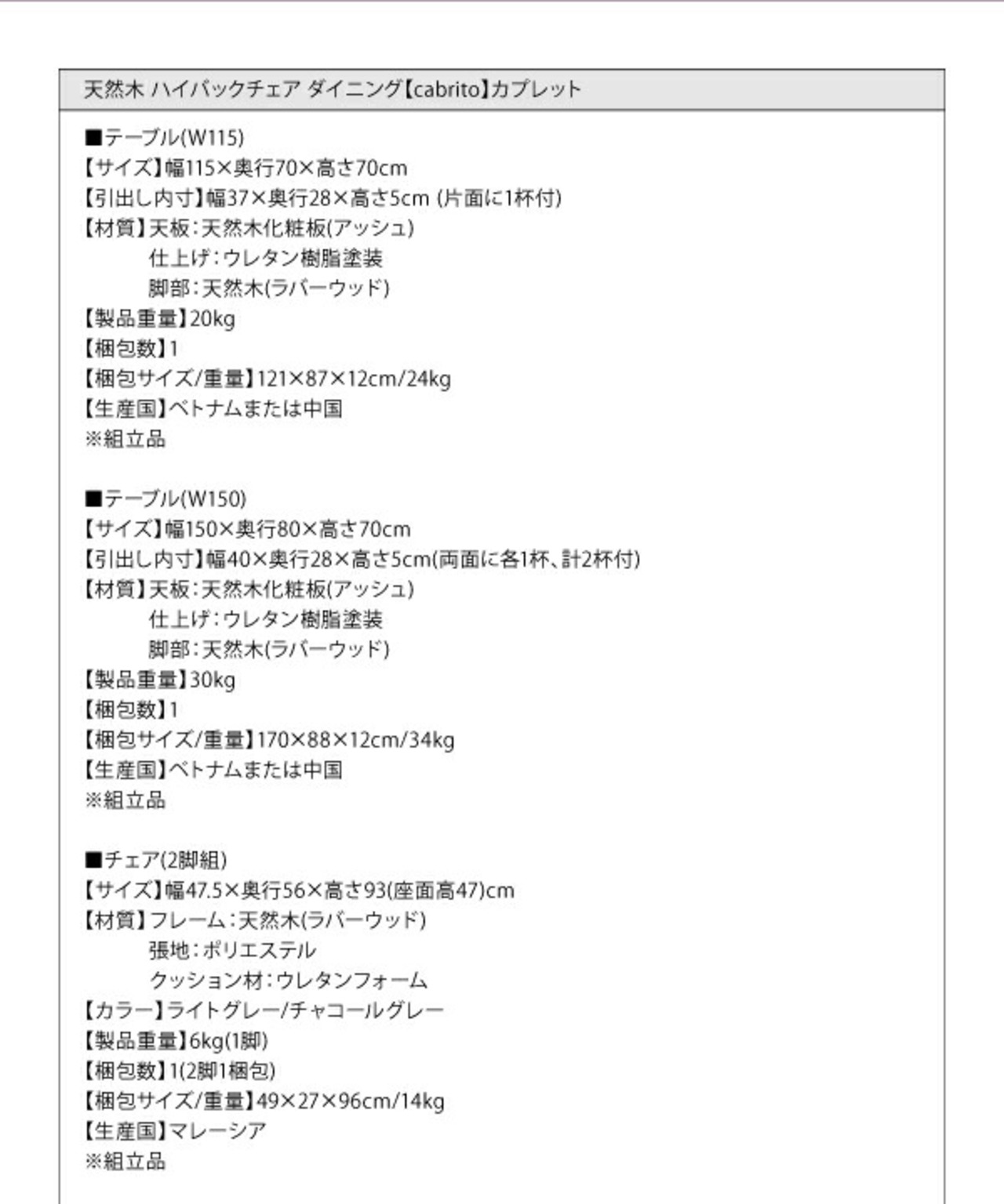 ●ベッド、リビングダイニング、収納家具については【完成品】【組立設置付き】と記載が無い場合はお客様にて組立が必要になります。
