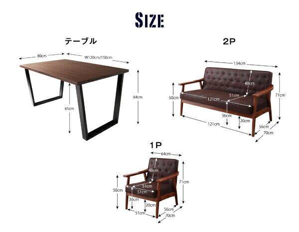 ヴィンテージスタイル ソファダイニングセット ダイニングテーブル W150