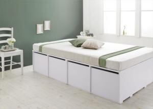 衣装ケースも入る大容量収納ベッド 薄型スタンダードボンネルコイルマットレス付き 引出し4杯 セミダブル