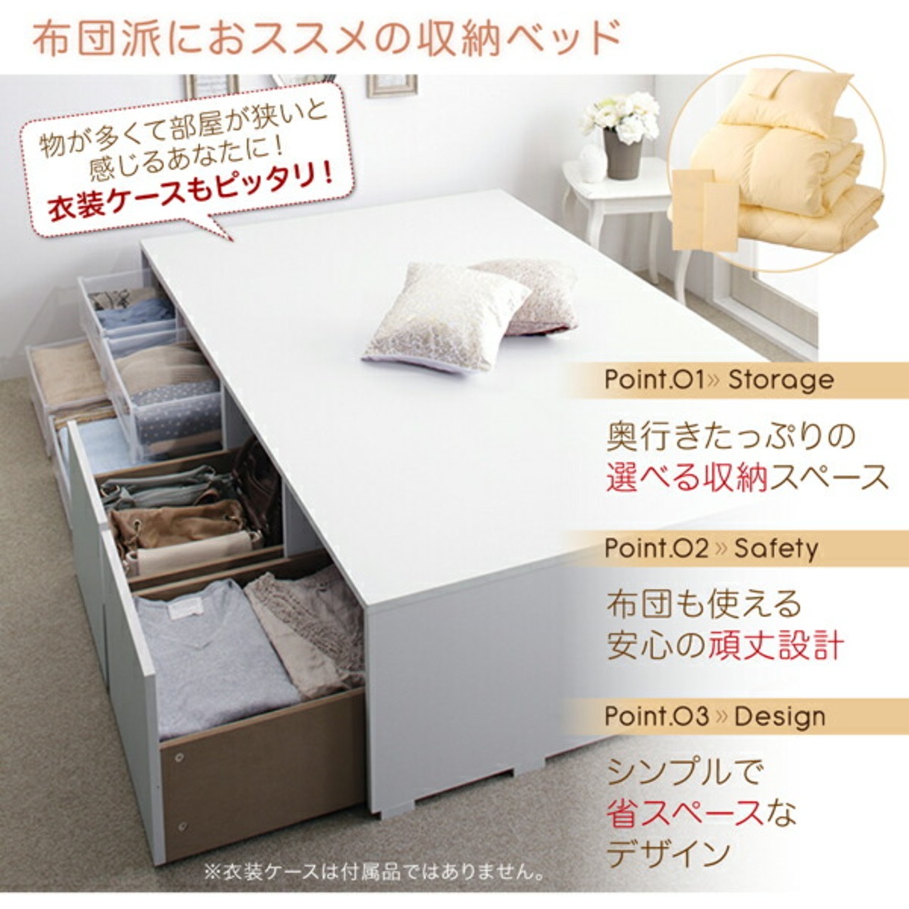布団で寝られる大容量収納ベッド ベッドフレームのみ 引出し4杯 ハイタイプ セミダブル