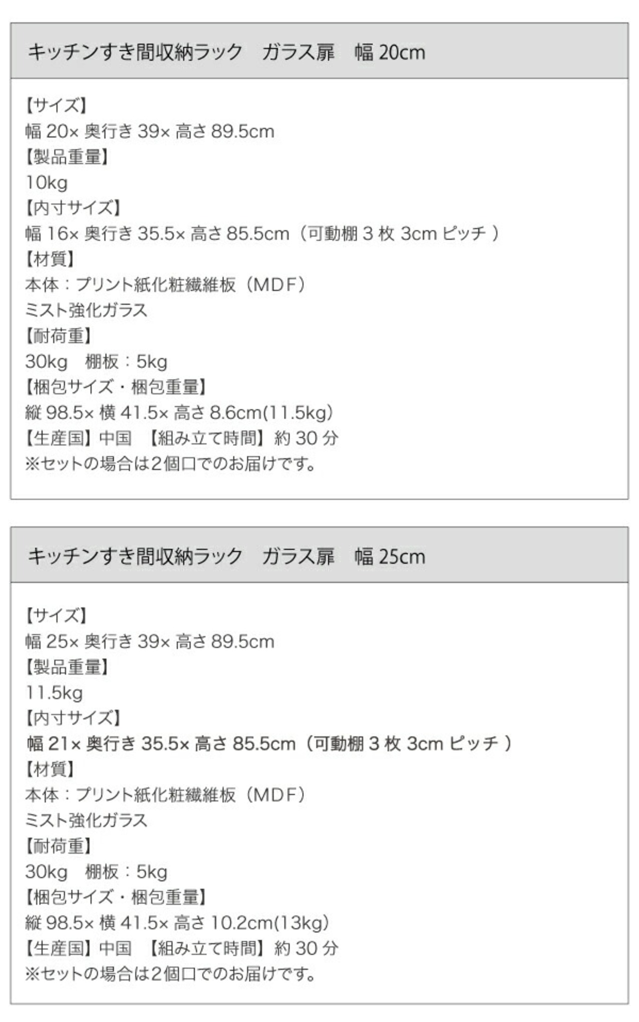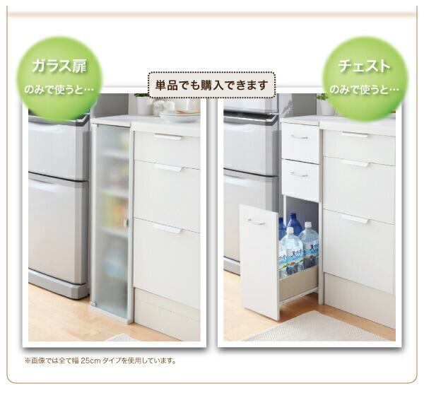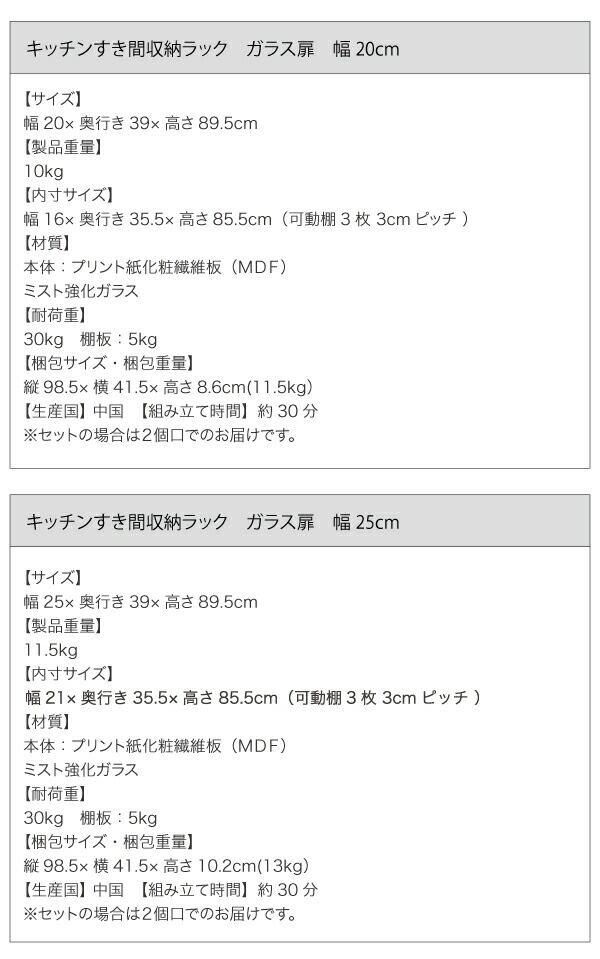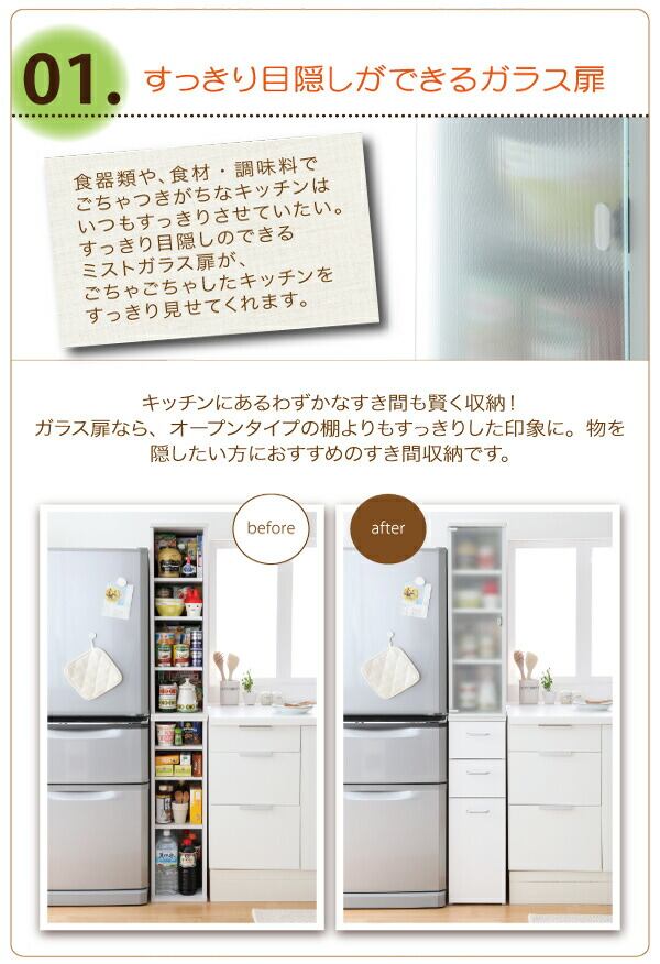 キッチンすき間収納ラック ガラス扉タイプ 幅25
