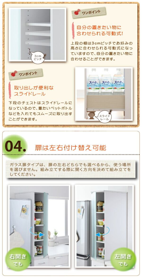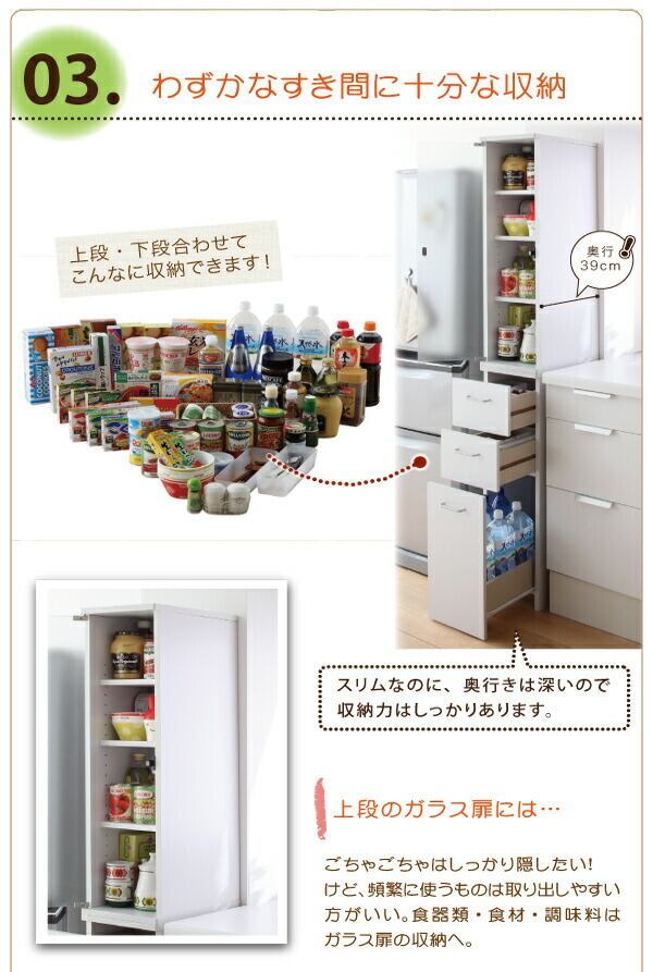 3方向から取り出せる!キッチンすき間収納ラック ガラス扉タイプ 幅25