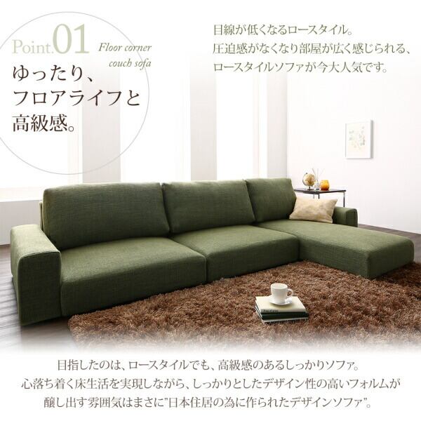 フロアコーナーカウチソファ ソファ ロータイプ 3.5P
