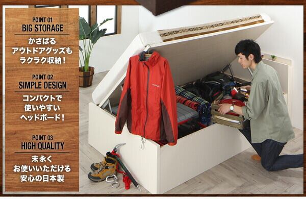 お客様組立 アウトドア収納跳ね上げベッド 薄型プレミアムポケットコイルマットレス付き セミシングル 深さグランド