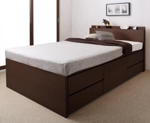 お客様組立 長く使える棚・コンセント付国産頑丈チェスト収納ベッド 薄型プレミアムポケットコイルマットレス付き セミシングル