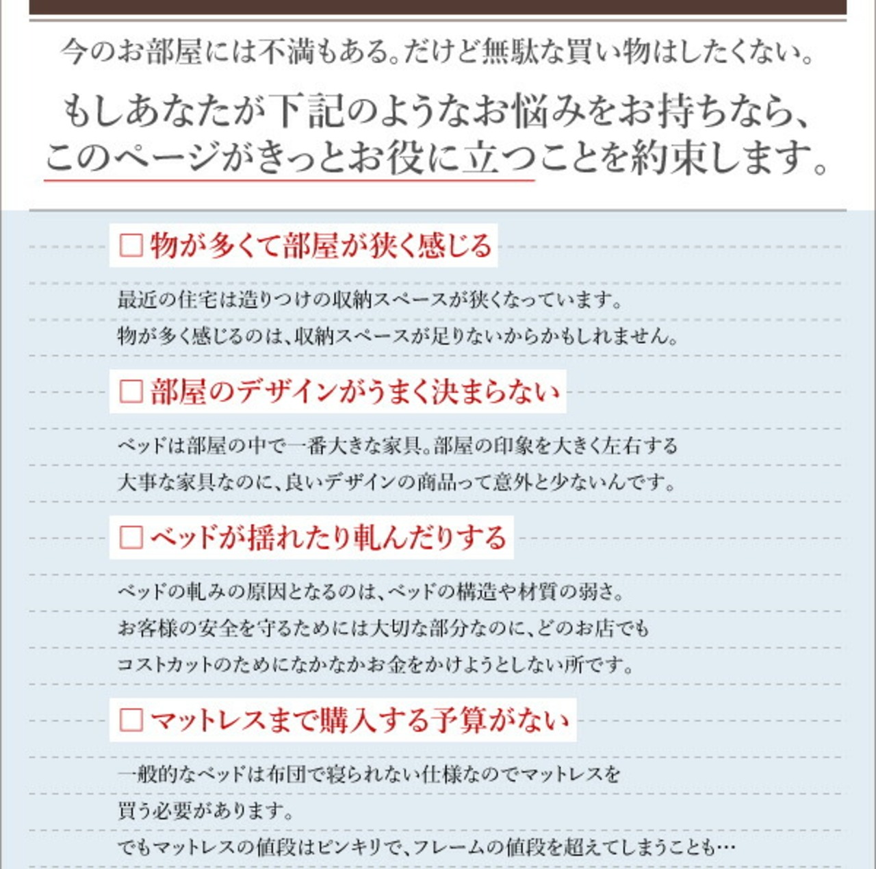 ●ベッド、リビングダイニング、収納家具については【完成品】【組立設置付き】と記載が無い場合はお客様にて組立が必要になります。