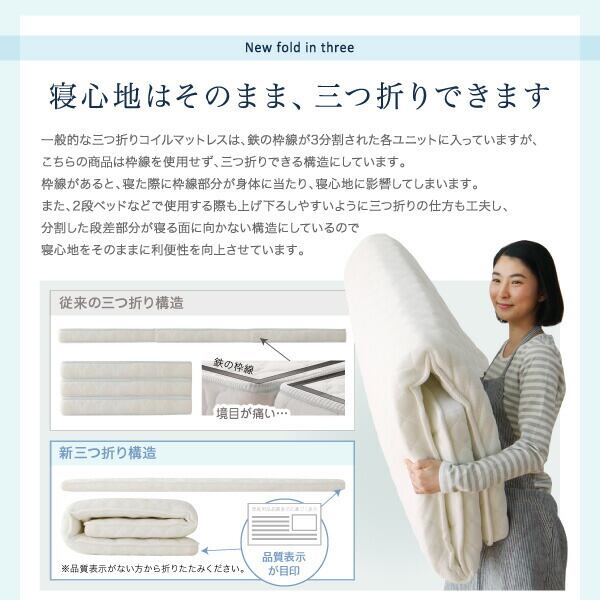 折りたたんで収納できる ポケットコイル入り 快眠 敷布団マットレス 薄型・軽量・高通気 シングル ショート丈