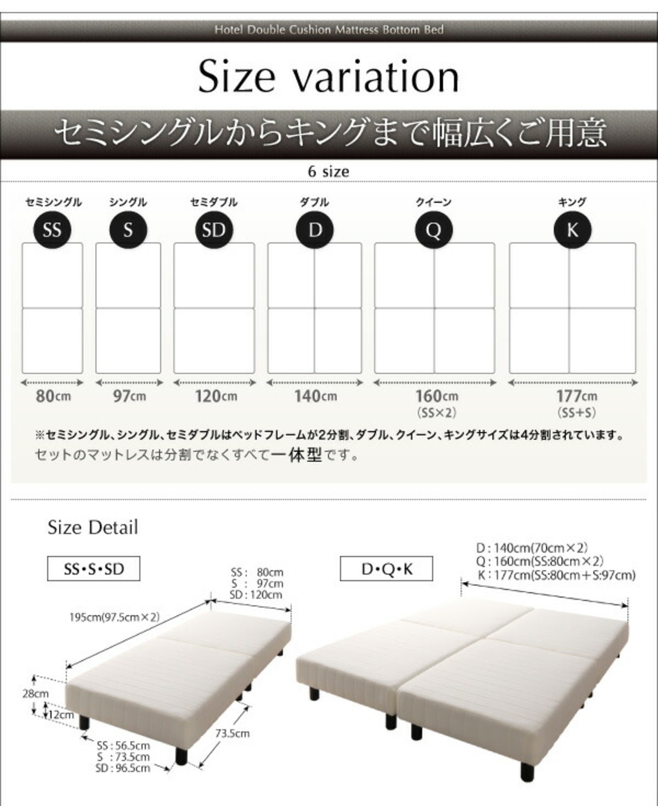 搬入・組立・簡単 寝心地が選べる ホテルダブルクッション 脚付きマットレスボトムベッド ベッドフレームのみ ダブル
