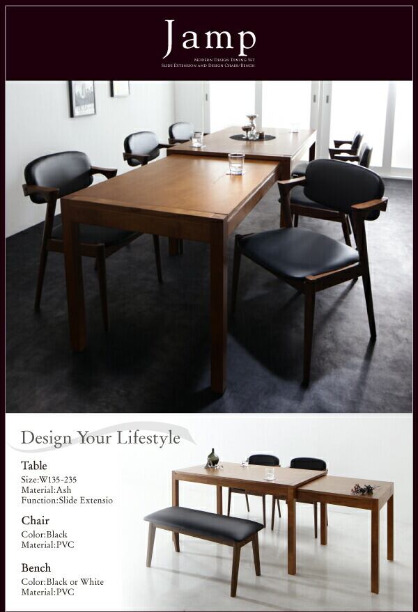 モダンデザイン スライド伸縮テーブル ダイニングセット ダイニングテーブル W135-235