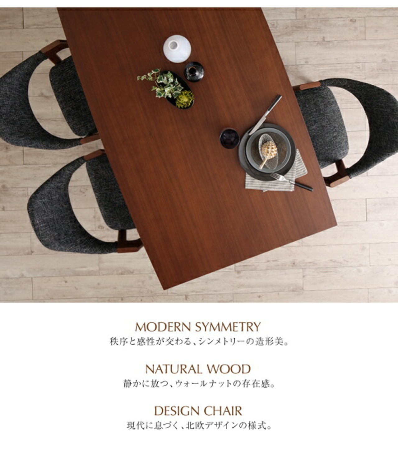 北欧テイスト 天然木ウォールナット材 伸縮ダイニングセット 7点セット(テーブル+チェア6脚) W140-240